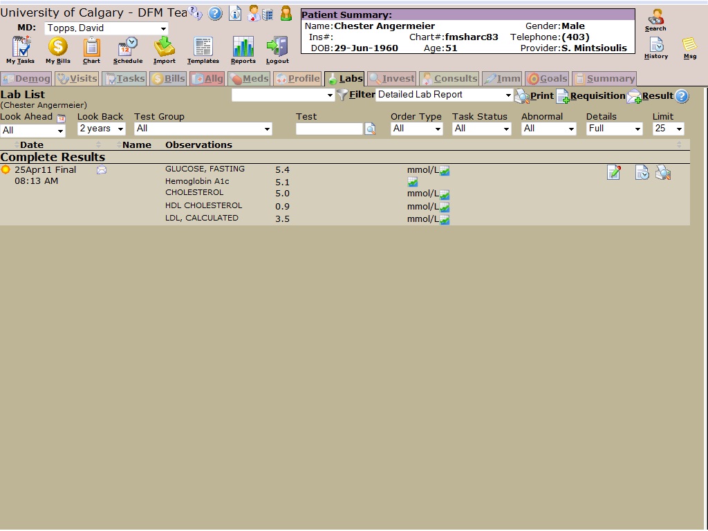 Lab HistoryHere is the lab work listed in his EMR: